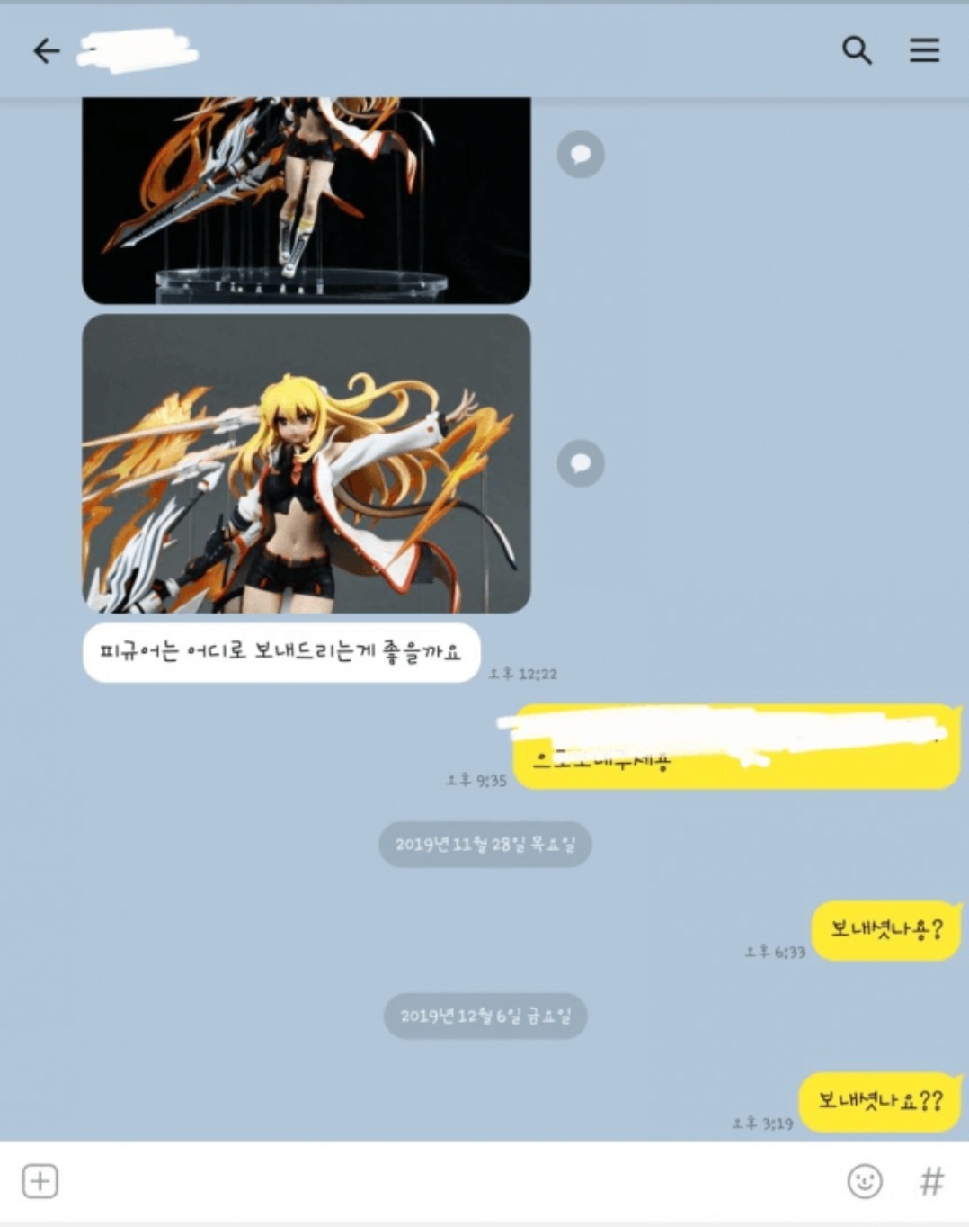 3. 호구가 통수 맞고 각성해서 이제 자기도 수령 안한다고 고소각 잡으니까 제작자가 새벽에 피규어들고 찾아옴