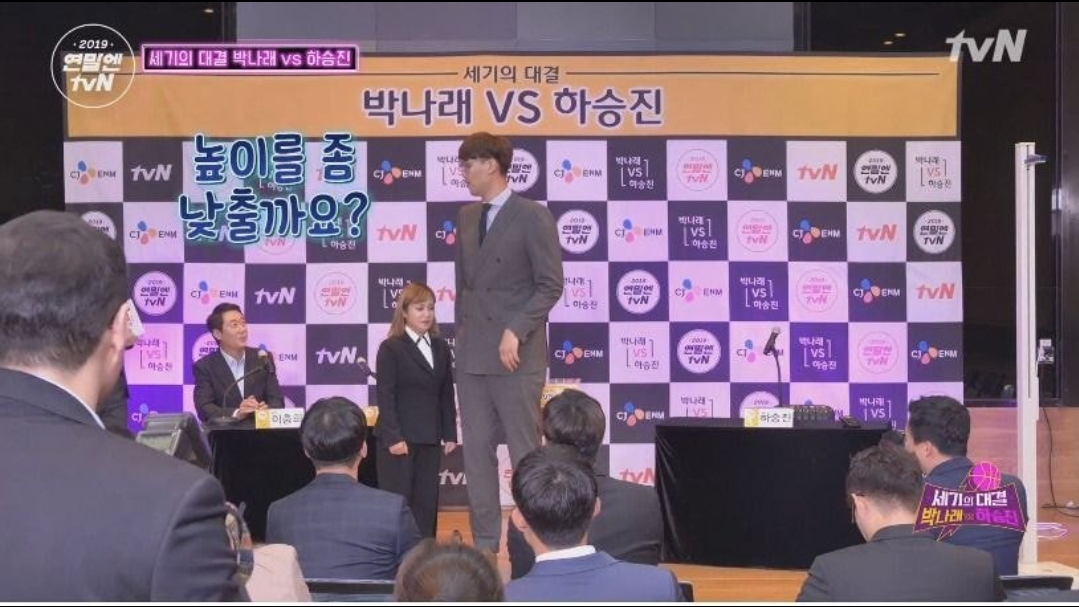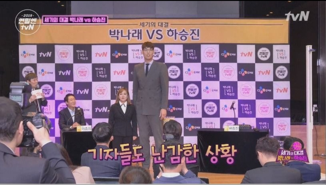 하승진, 박나래와 기자회견 자리에서 매너다리