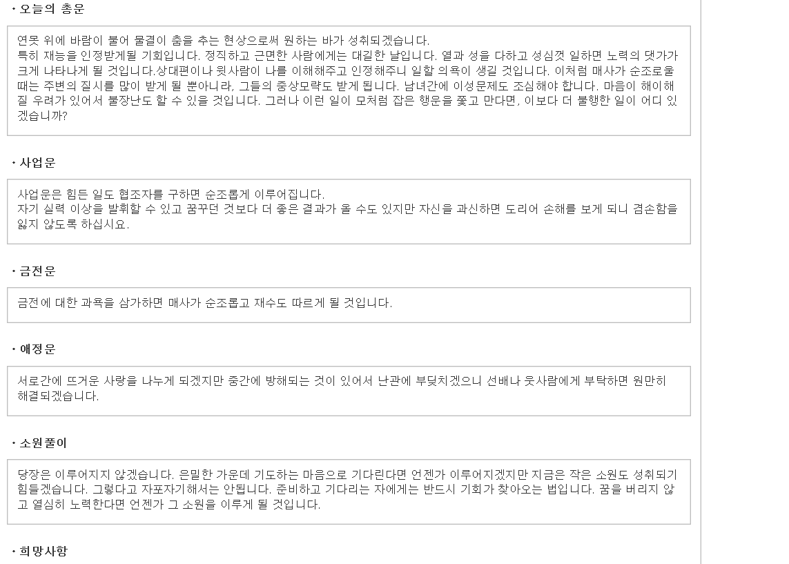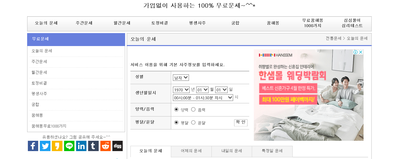 가입없이 사용하는 100% 무료운세