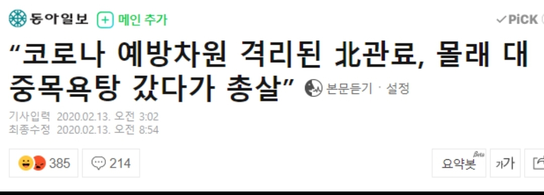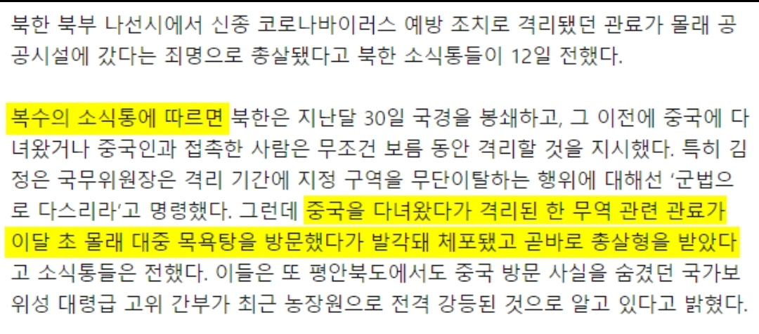 북한 , 중국 우한 폐렴 바이러스 첫 사망자 발생