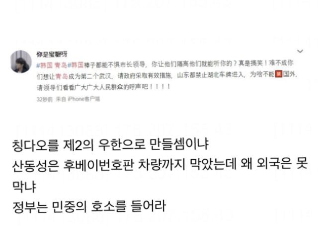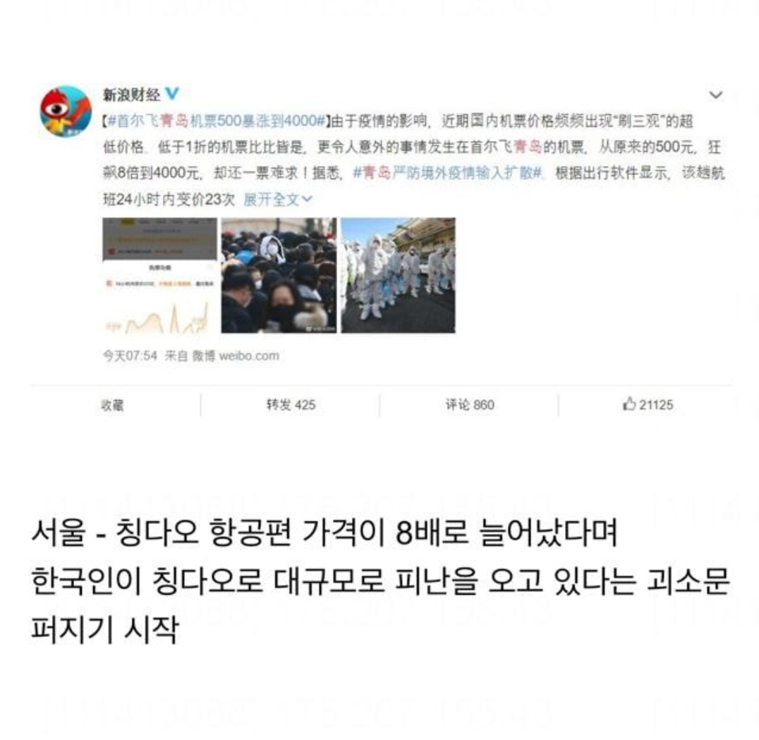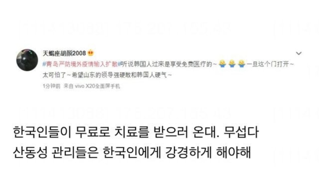 우한폐렴, 중국 인터넷에서 퍼지고있는 한국관련 괴소문