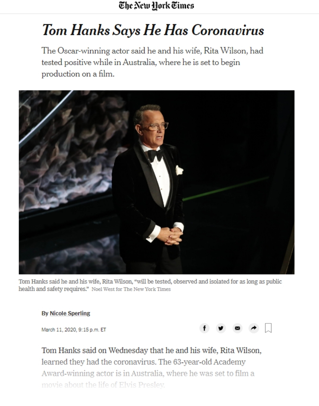 톰 행크스 코로나 바이러스 확진