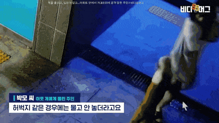 아파트에서 불독 2마리에게 쫒기며 물린 피해자.gif
